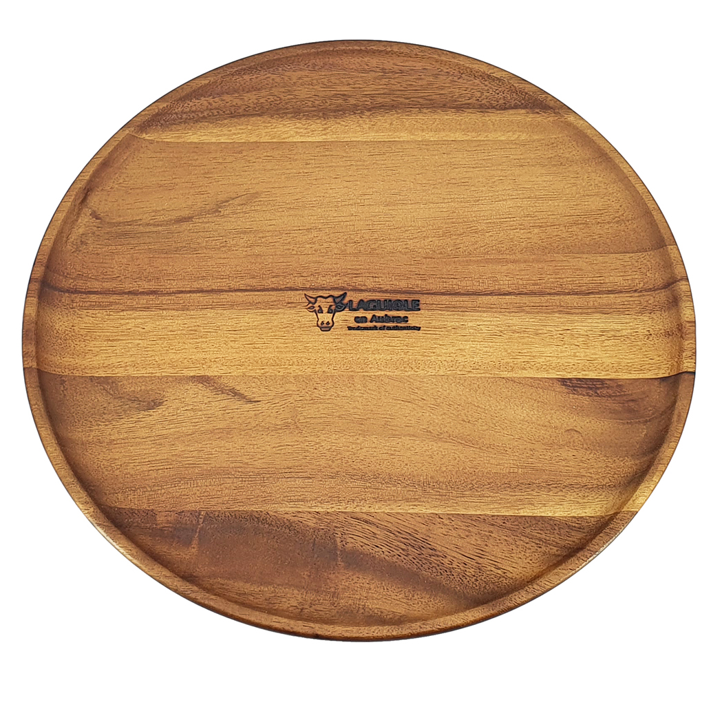 Runde Akazienplatte, ideal zum Präsentieren von Käse, Tapas und anderen Köstlichkeiten.