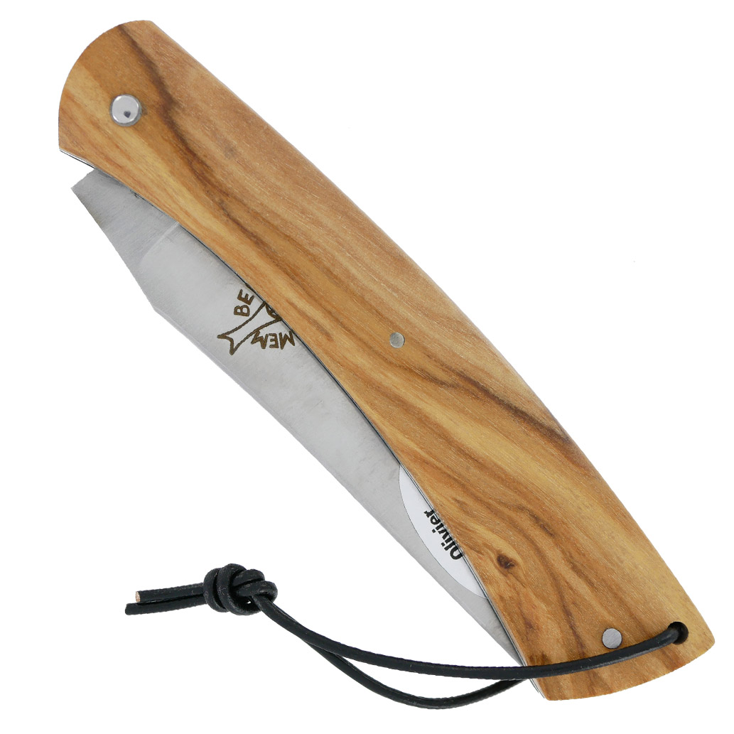 Dieses Messer beeindruckt mit einem Griff aus Olivenholz, der mit einer Lederschnur verziert ist, und einer gebürsteten Klinge aus 12C27 Edelstahl. Es verfügt über einen Zwangskerben-Verschlussmechanismus, der für eine sichere Arretierung sorgt. Im geöffneten Zustand erreicht das Messer eine Gesamtlänge von 19,6 cm, wobei die Klinge 8,6 cm und der Griff 11 cm misst. Mit einem Gewicht von 86 Gramm vereint es Funktionalität und Stil. Die Lieferung erfolgt in einer authentischen Camembert-Box, die für eine besondere Präsentation sorgt.