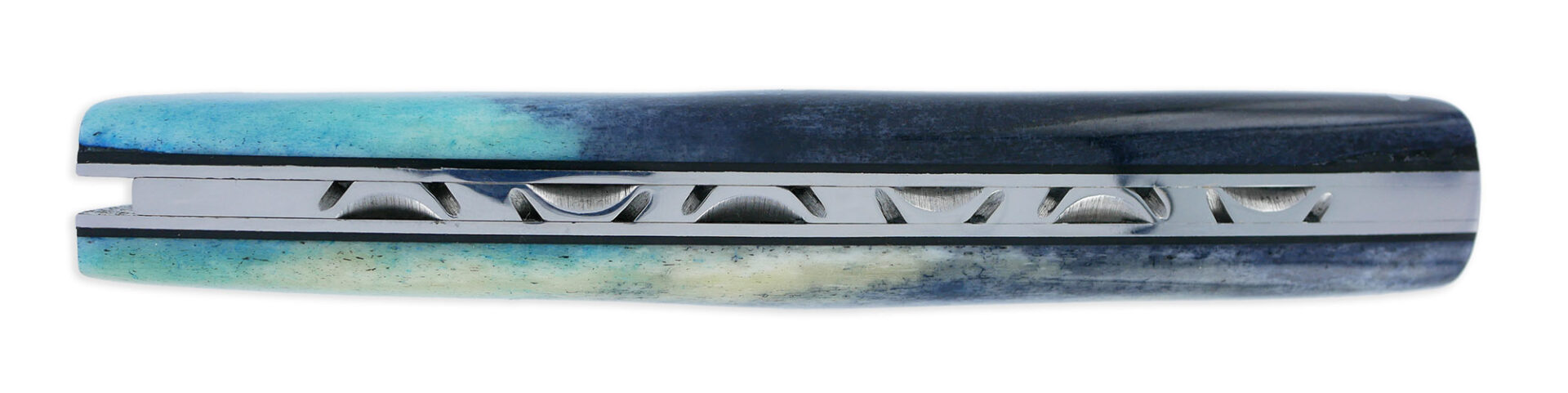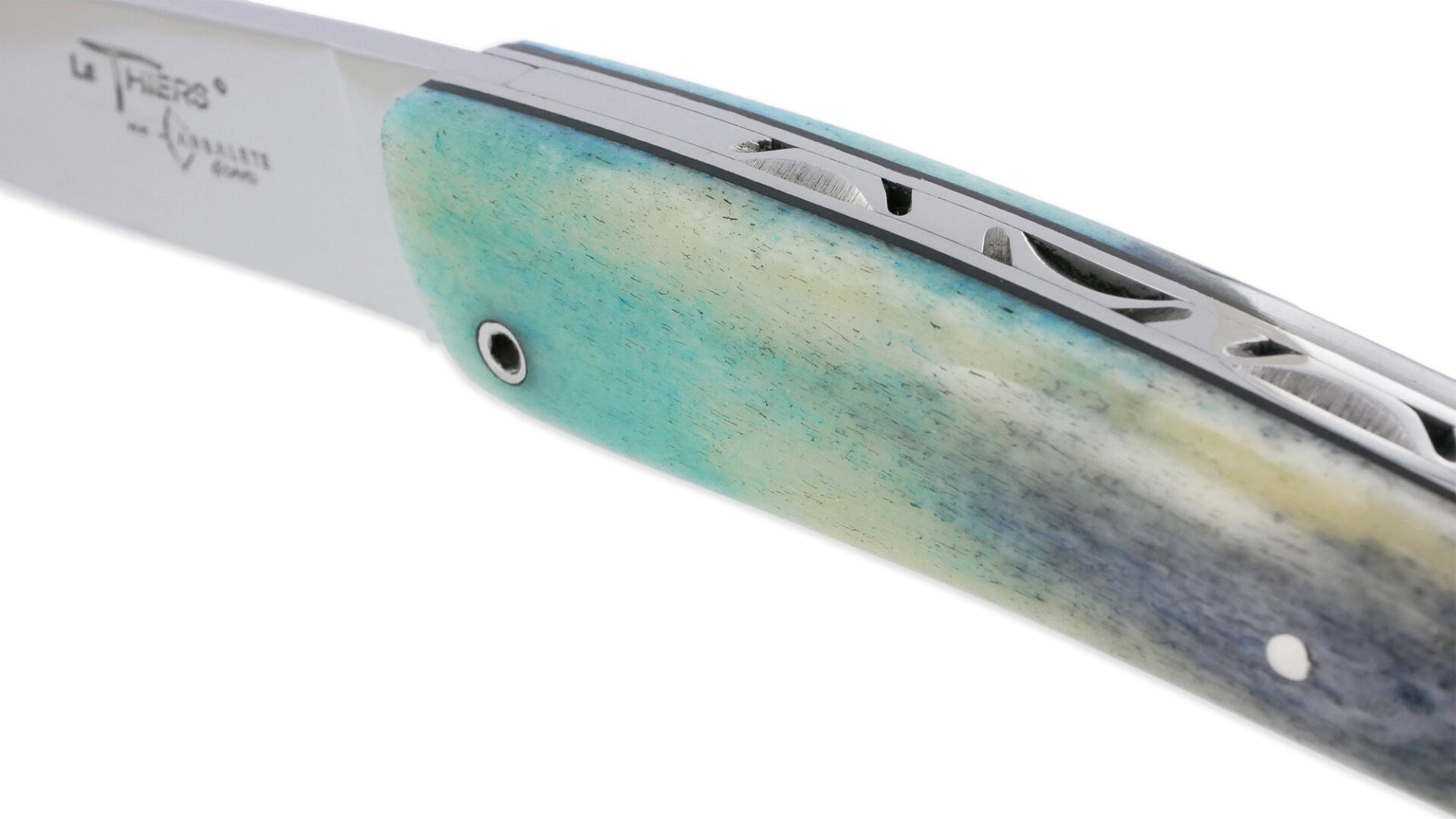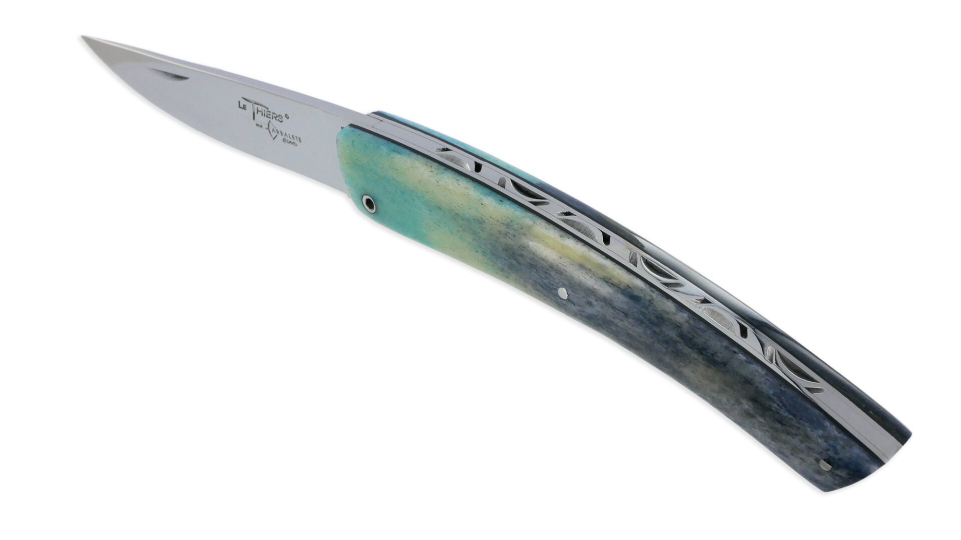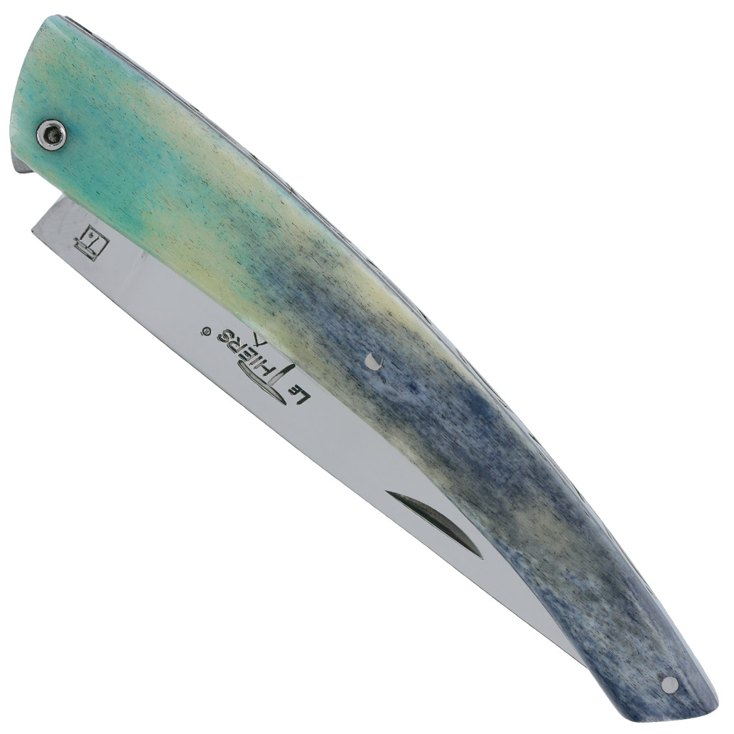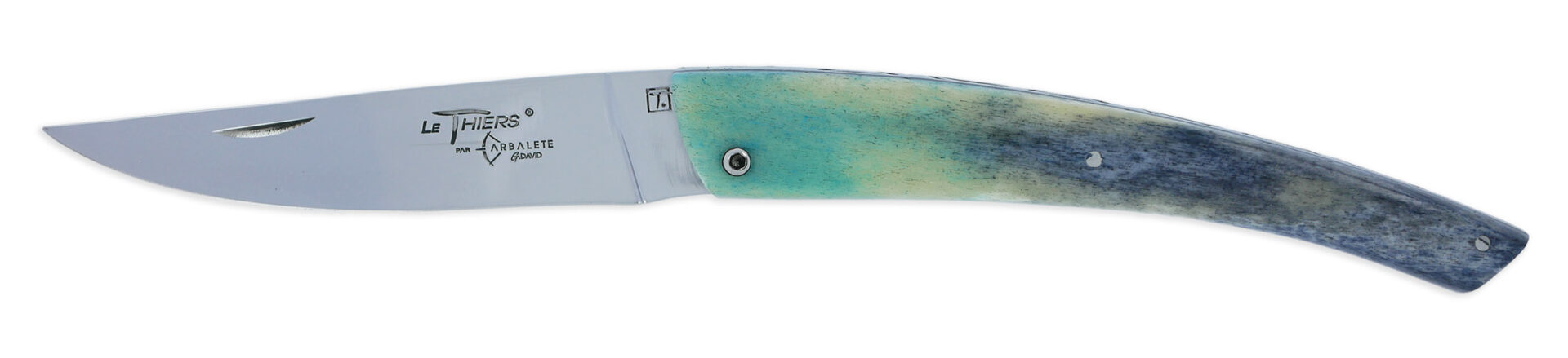 Der Thiers Laguiole Arbalete Messer mit vollem Griff aus blauem Knochen