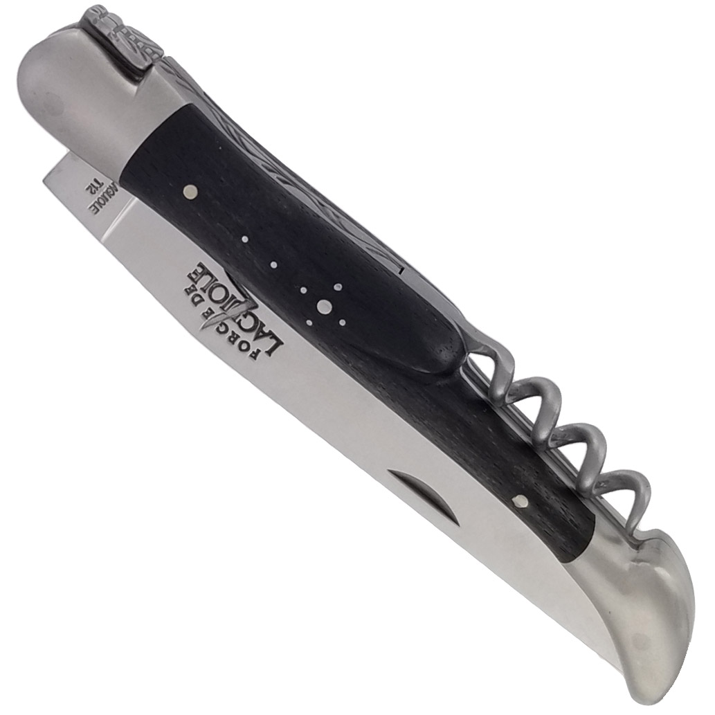 Forge de Laguiole Messer mit Ebenholzgriff und Korkenzieher, 2-teilig, gebürsteter Edelstahl, 12 cm