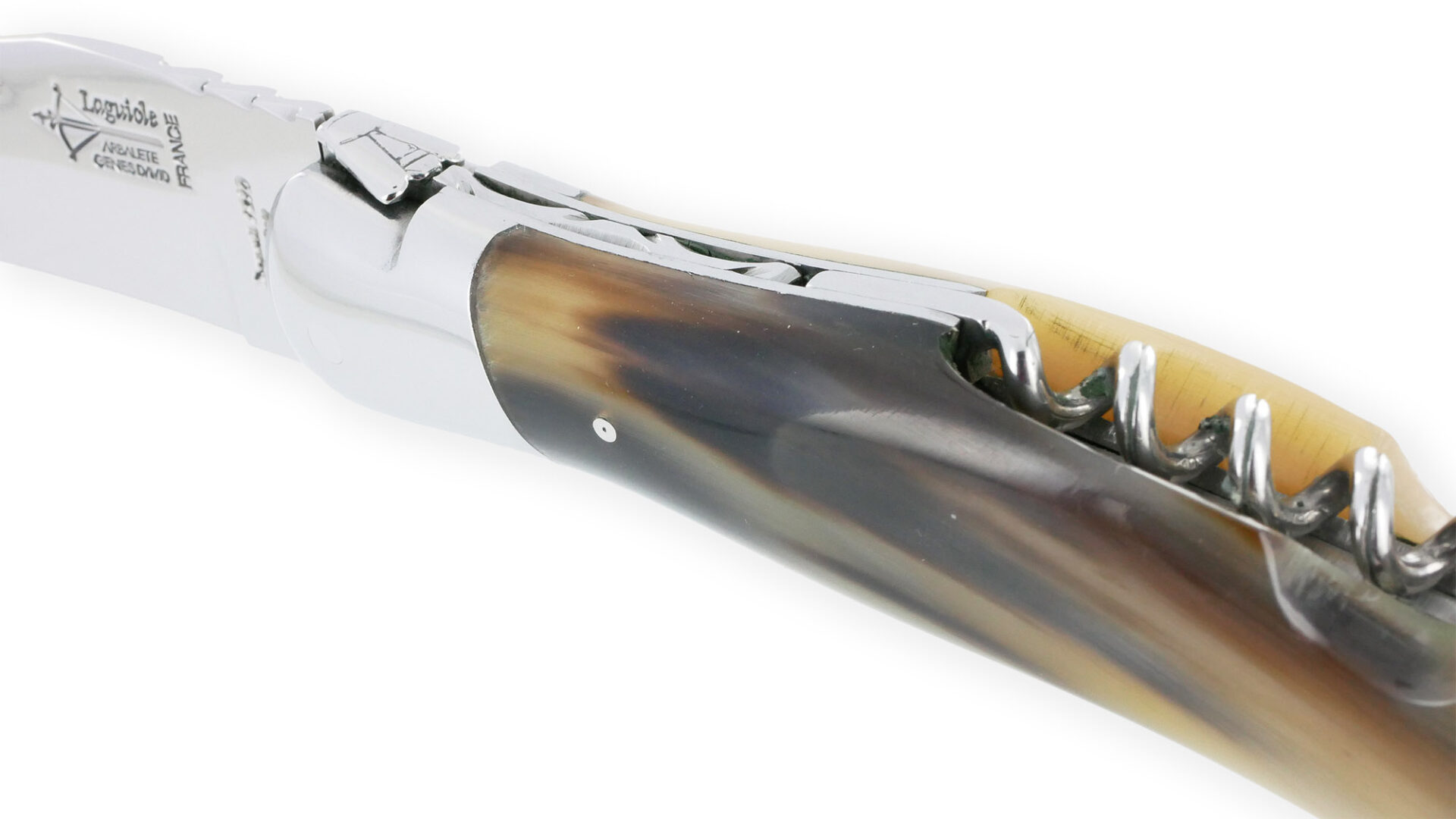 Jagdmesse mit Korkenzieher Laguiole Arbalète Horngriffspitze
