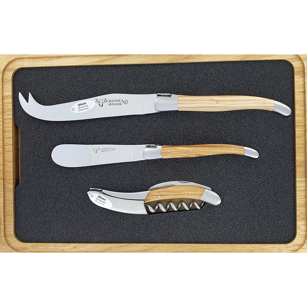 Käse- und Wein-Servierset Laguiole en Aubrac Olivenholz (3-teilig)