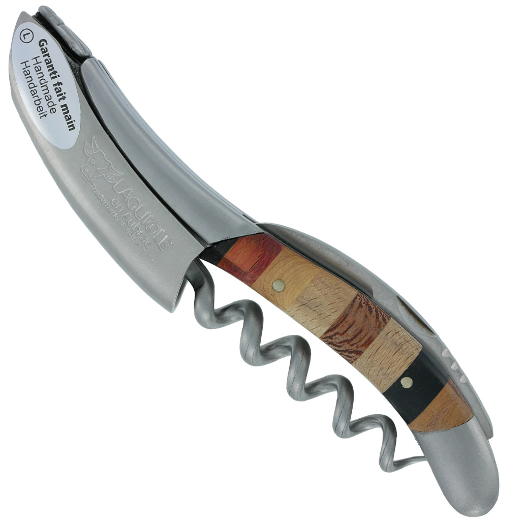 Laguiole en Aubrac Korkenzieher Intarsien Woodstock Gebürsteter Edelstahl 12cm