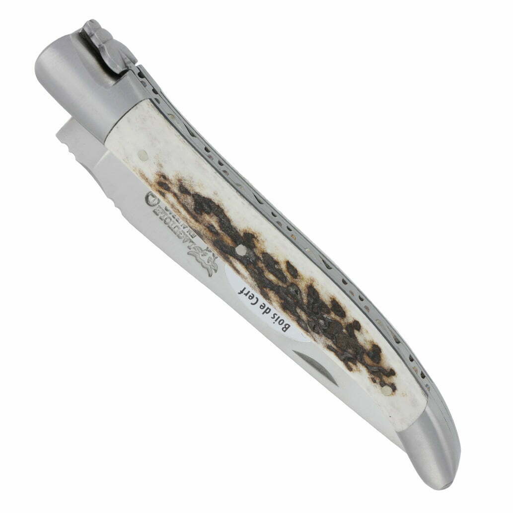Hirschgeweih, ein natürlich erneuerbarer Rohstoff, wird während des jährlichen Abwerfens der Geweihe männlicher Hirsche gewonnen und zur Herstellung unserer Messer verwendet. Dieses Material sorgt dafür, dass Ihr Laguiole-Messer mit Geweihgriff stoßfest, langlebig und dank seiner strukturierten Oberfläche einen hervorragenden Halt bietet, was es ideal für den täglichen Gebrauch macht. Der rustikale Charme und die Langlebigkeit von Hirschgeweihgriffen werden hoch geschätzt.