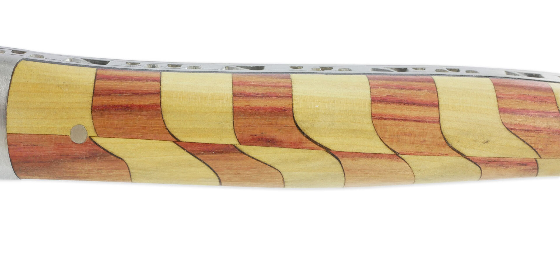 Laguiole en Aubrac Messer 1 Stück 12 cm Schachbrett Rosenholz- und Buchsbaumgriff 2 gebürstete Edelstahlbacken