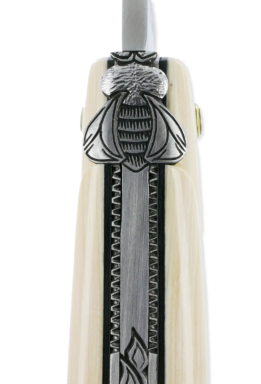 Laguiole en Aubrac Messer 1 Stück 12 cm Voll-Mammutelfenbeingriff Handgeschnitzte Feder und Platinen Fliege Nr. 3