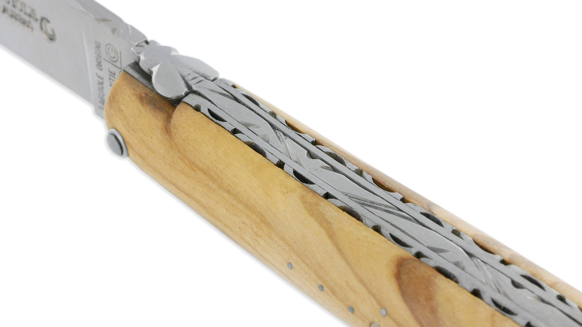 Dieses Messer beeindruckt mit einer gebürsteten 12C27 Edelstahlklinge, die mit einem Tab versehen ist, und einem Griff aus Olivenholz, der für einen sicheren Halt sorgt. Die Fliege ist sorgfältig geschmiedet und von Hand ziseliert, während die Feder handgefertigt und aus poliertem Edelstahl geschnitzt ist. Es verfügt über doppelte, handgefertigte Platinen aus glänzendem Edelstahl und zeigt das ikonische Hirtenkreuz auf der linken Seite. Im geschlossenen Zustand misst das Messer 12 cm, die Klinge ist 10 cm lang, und im geöffneten Zustand erreicht es eine Gesamtlänge von 22 cm.