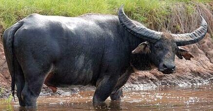 Der Wasserbüffel, oder Bubalus bubalis, ist ein domestiziertes Säugetier aus der Familie der Bovidae, das in Asien beheimatet ist. Geschätzt für seine Stärke und Anpassungsfähigkeit, wird er häufig in der Landwirtschaft für Aufgaben wie das Pflügen von Reisfeldern sowie für die Milch- und Fleischproduktion eingesetzt. Sein charakteristisches dunkles Fell und die gebogenen Hörner, zusammen mit seiner robusten Natur, machen ihn in vielen Regionen, insbesondere in Südasien, zu einem unverzichtbaren Tier.