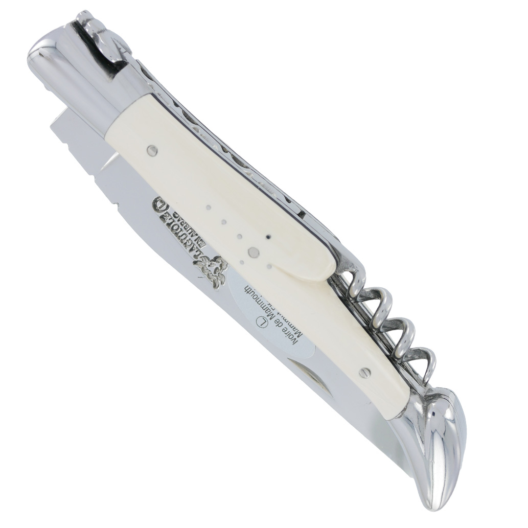 Laguiole en Aubrac Messer 2 Stück 12 cm Korkenzieher Mammutelfenbeingriff 2 glänzende Edelstahlbacken