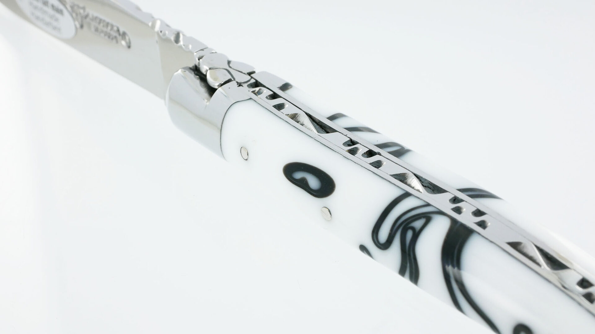 Laguiole en Aubrac Messer Marshmallow Weiß 1 Stück Acrylgriff 2 Backen Glänzender Edelstahl 10 cm