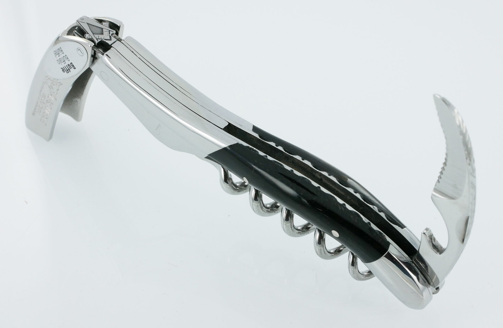 Büffelhorn wird in der Messerwelt wegen seiner Robustheit und seines markanten Aussehens hoch geschätzt. Es verleiht dem Sommelier einen rustikalen und authentischen Charakter, wobei jeder Griff durch seine einzigartige Farbgebung und Musterung besticht und somit ein unverwechselbares Unikat darstellt.
