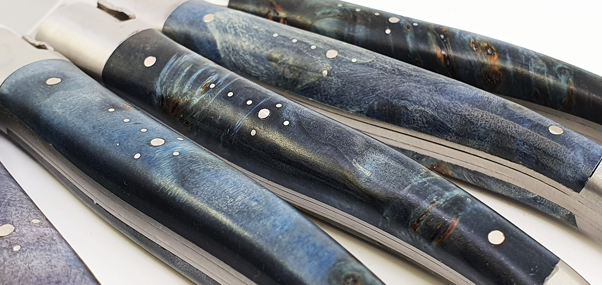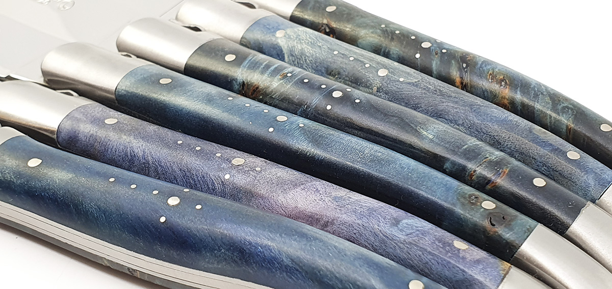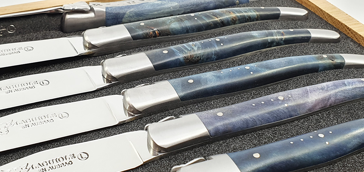 Laguiole en Aubrac Tischmesser Blau Grün Pappelmaser (Set aus 6)