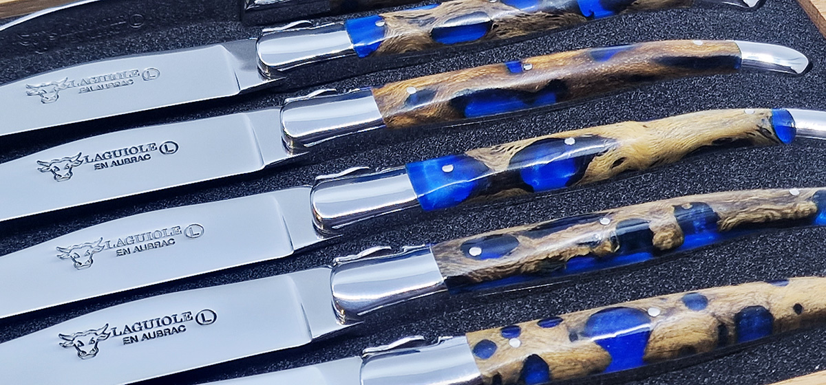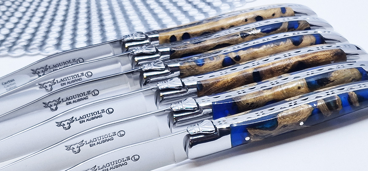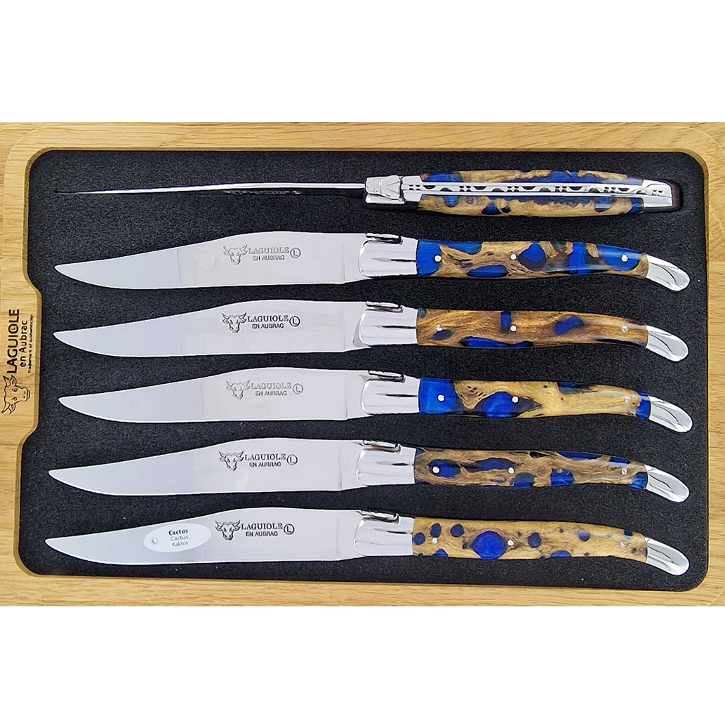 Laguiole en Aubrac Tischmesser Blau Kaktus (Set aus 6)