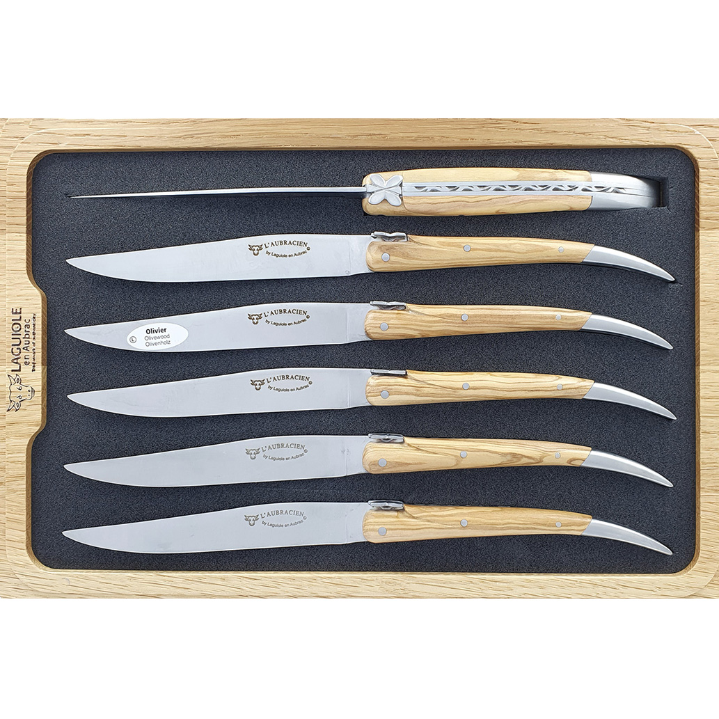 Laguiole en Aubrac Tischmesser L’Aubracien Olivenholz (Set aus 6)