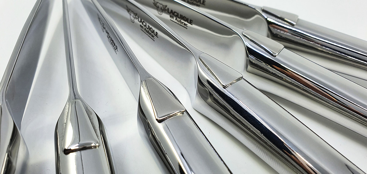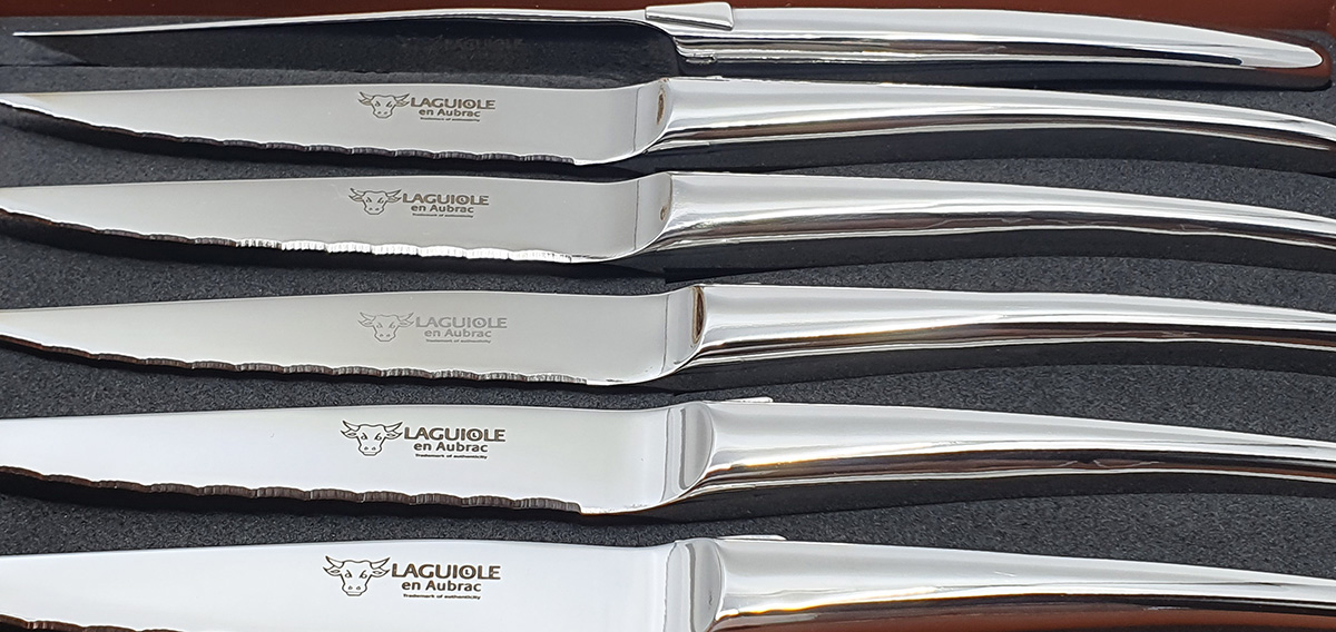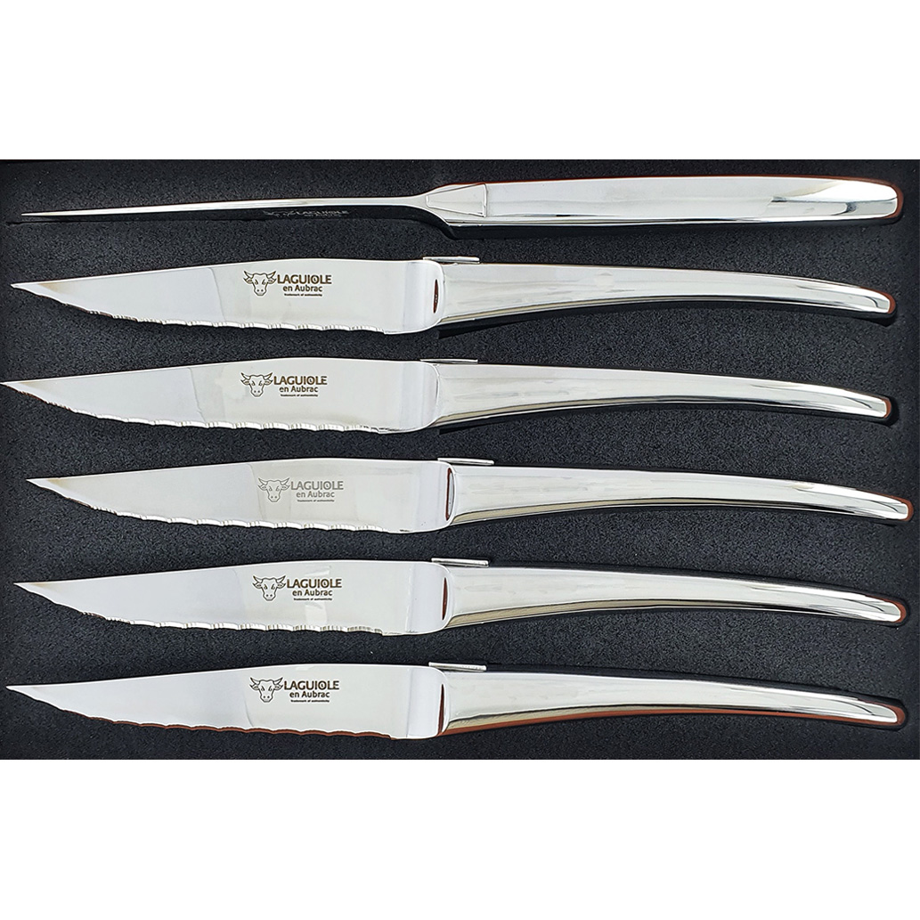 Satz von 6 Laguiole-Tafelmessern – Monoblock-Design in polierter Ausführung