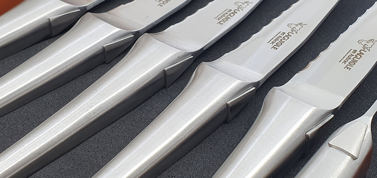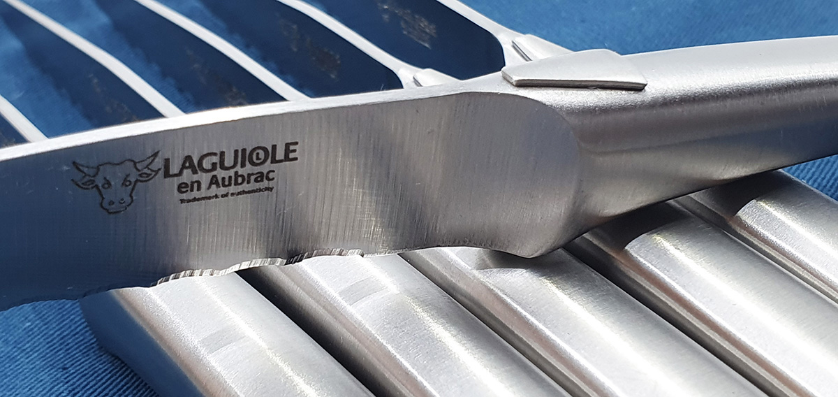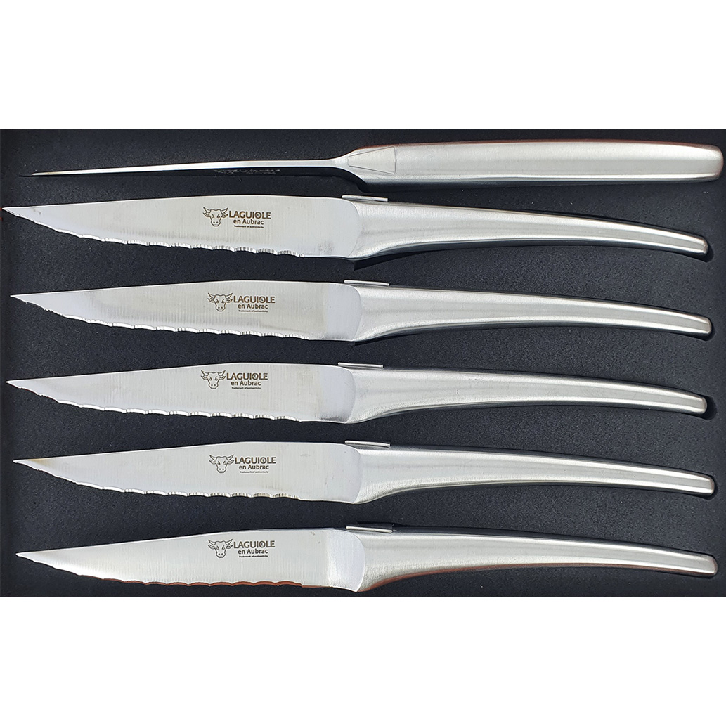 Laguiole en Aubrac Tischmesser Steakmesser Gezahnt Gebürsteter Edelstahl Monoblock (Set aus 6)