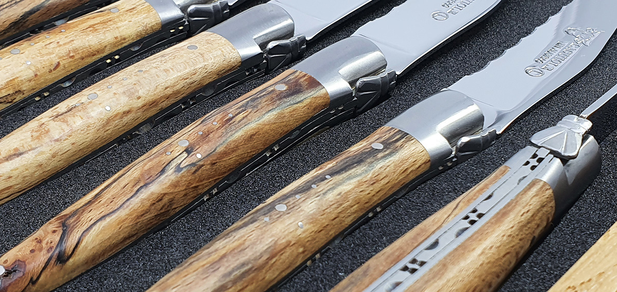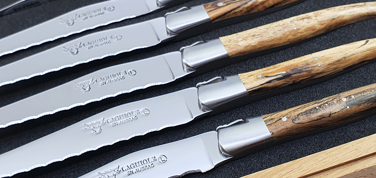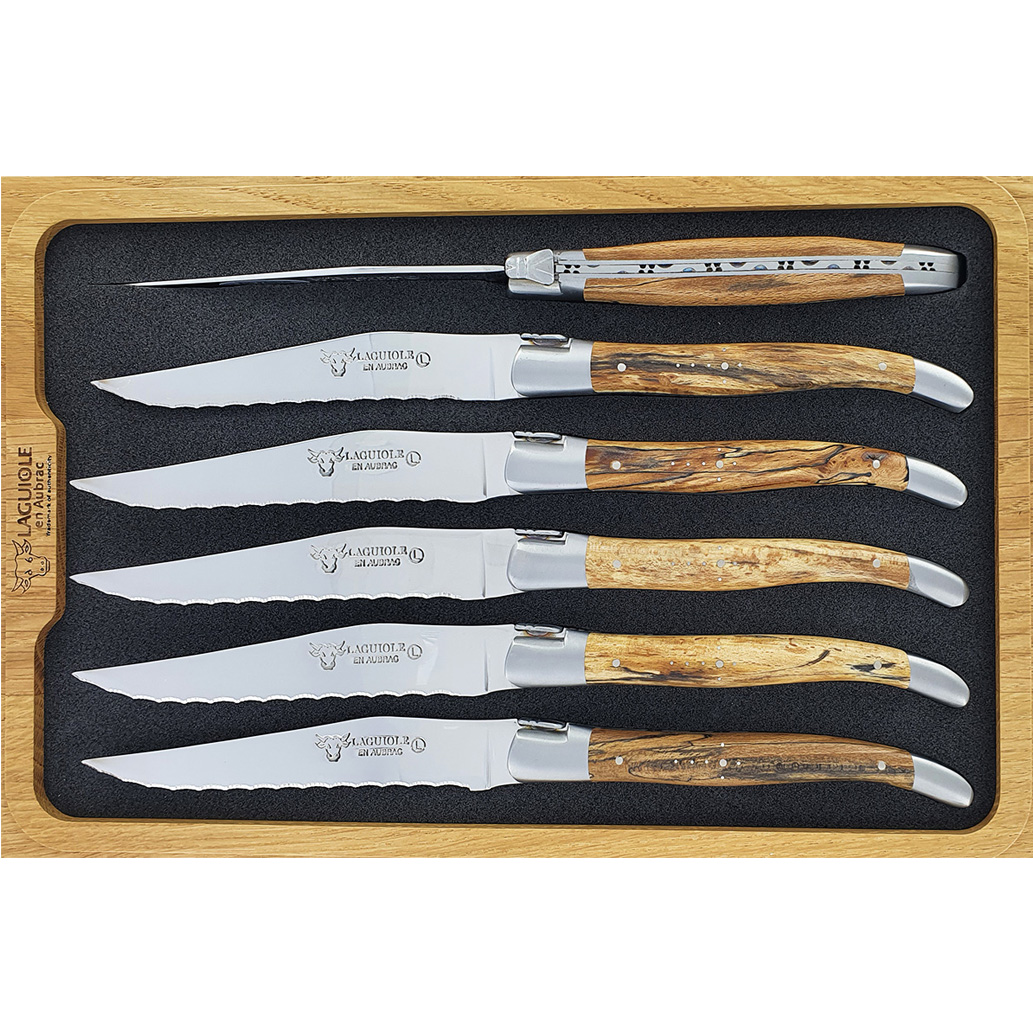 Laguiole en Aubrac Tischmesser Steakmesser mit Wellenschliff Aubrac Holz (Set aus 6)