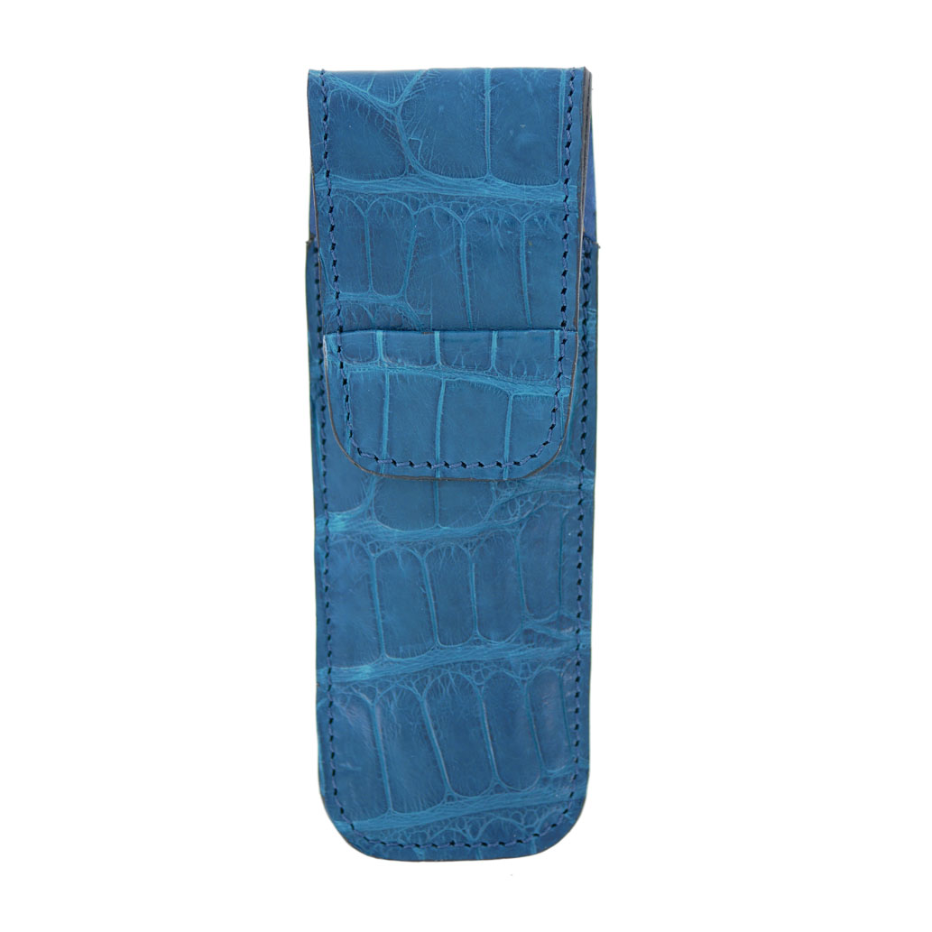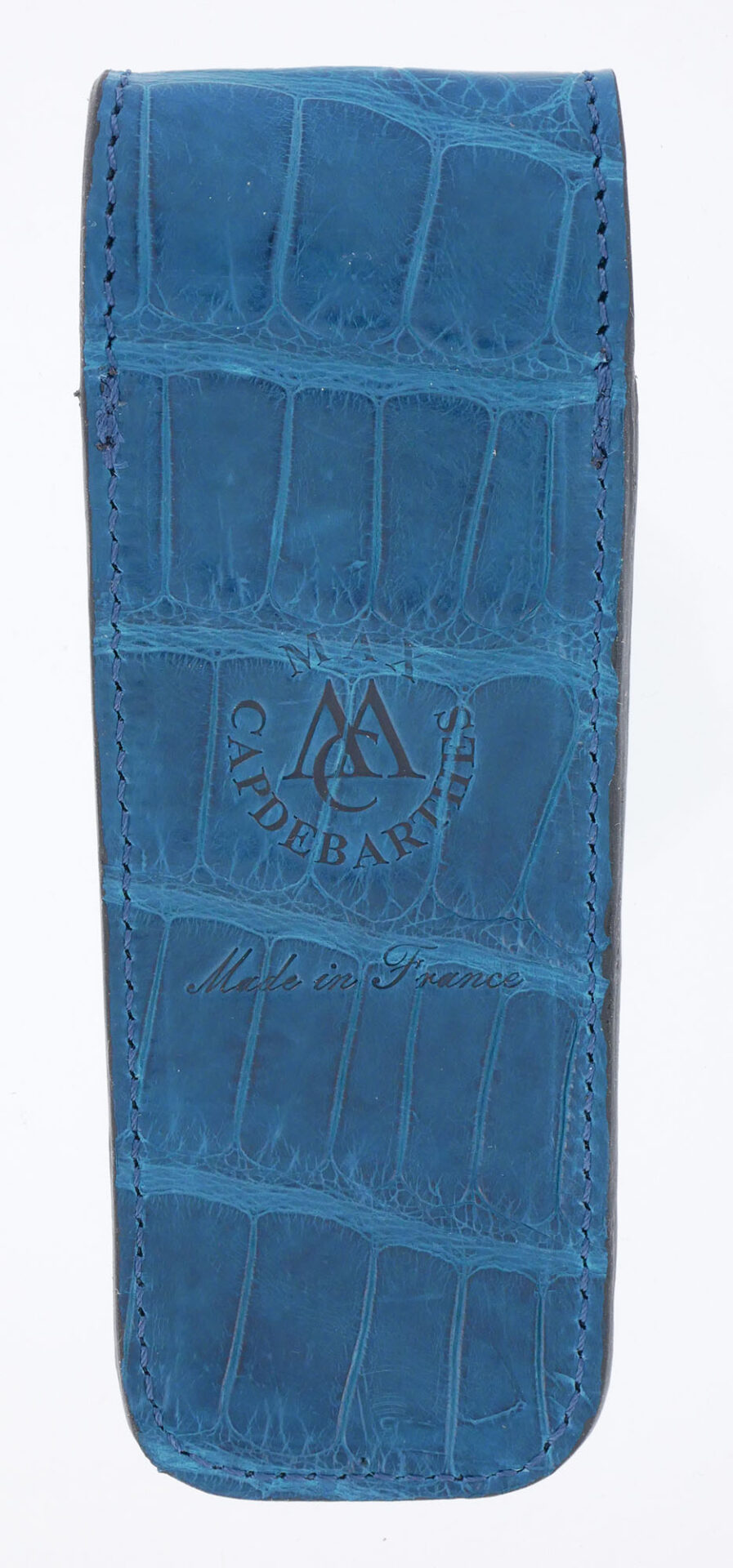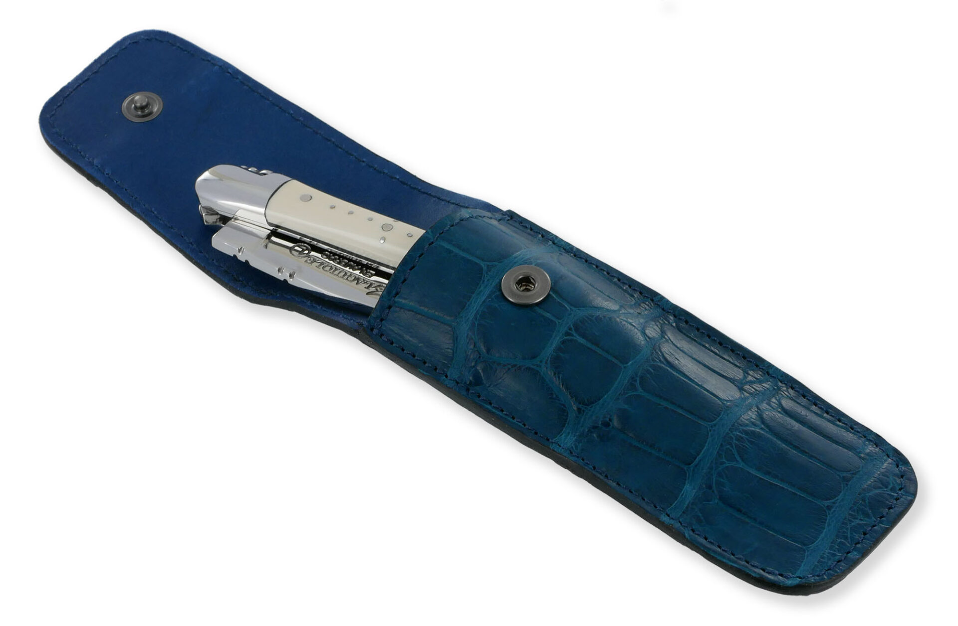 Laguiole Messer Club Ledertasche mit blauem Krokodildeckel