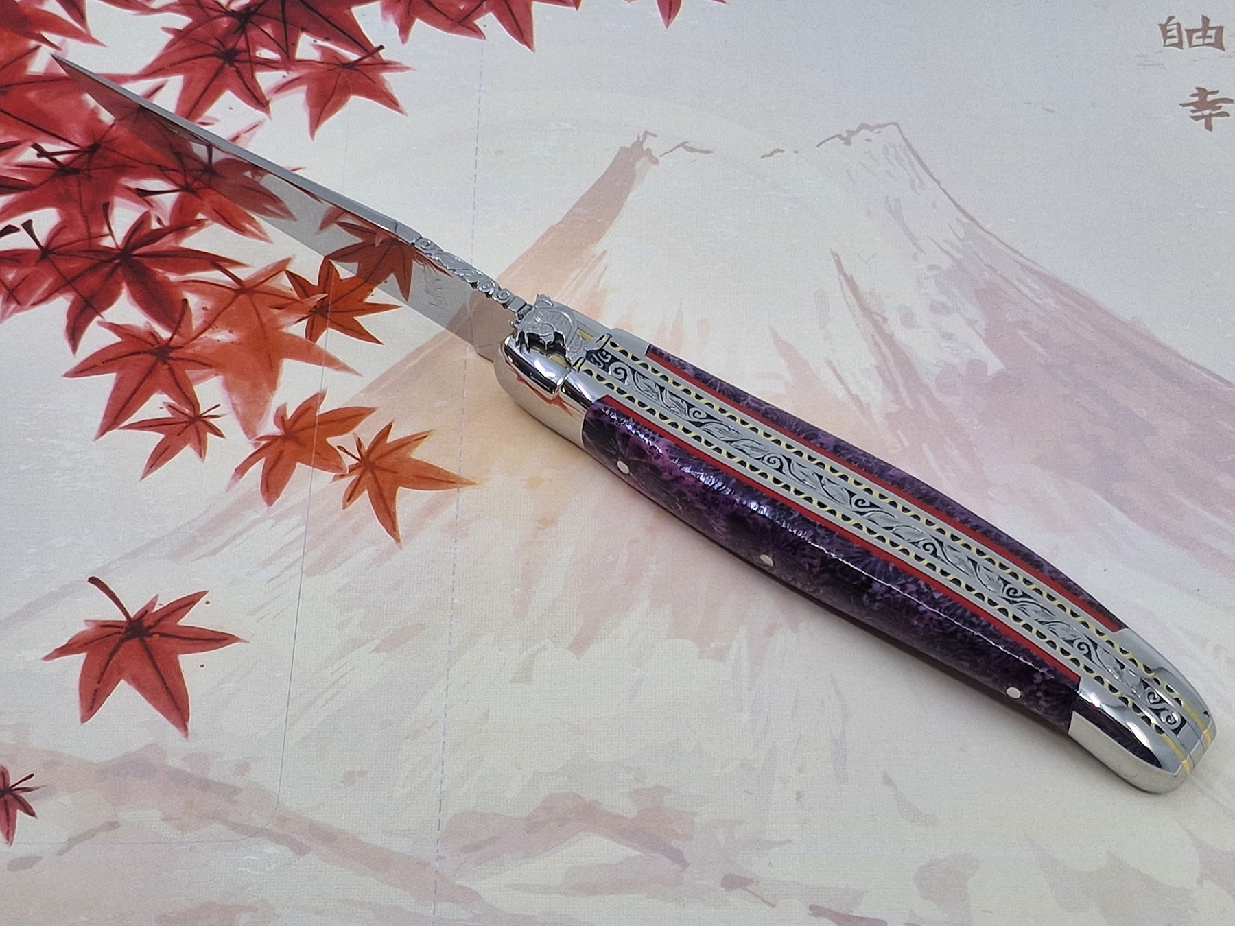 Prestige Laguiole Klappmesser mit einem Griff aus violettem Korallenmaterial