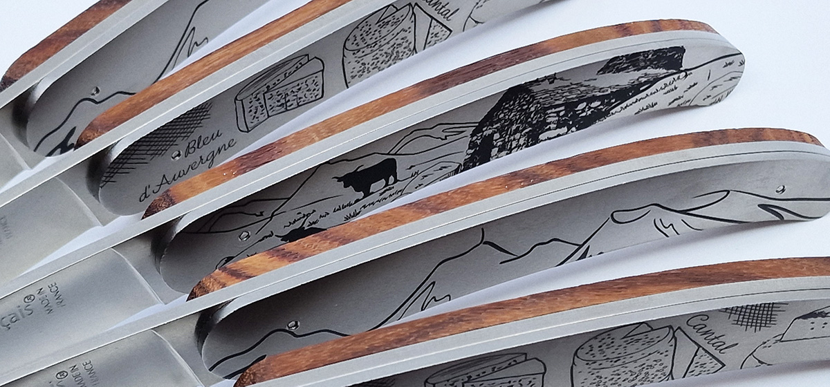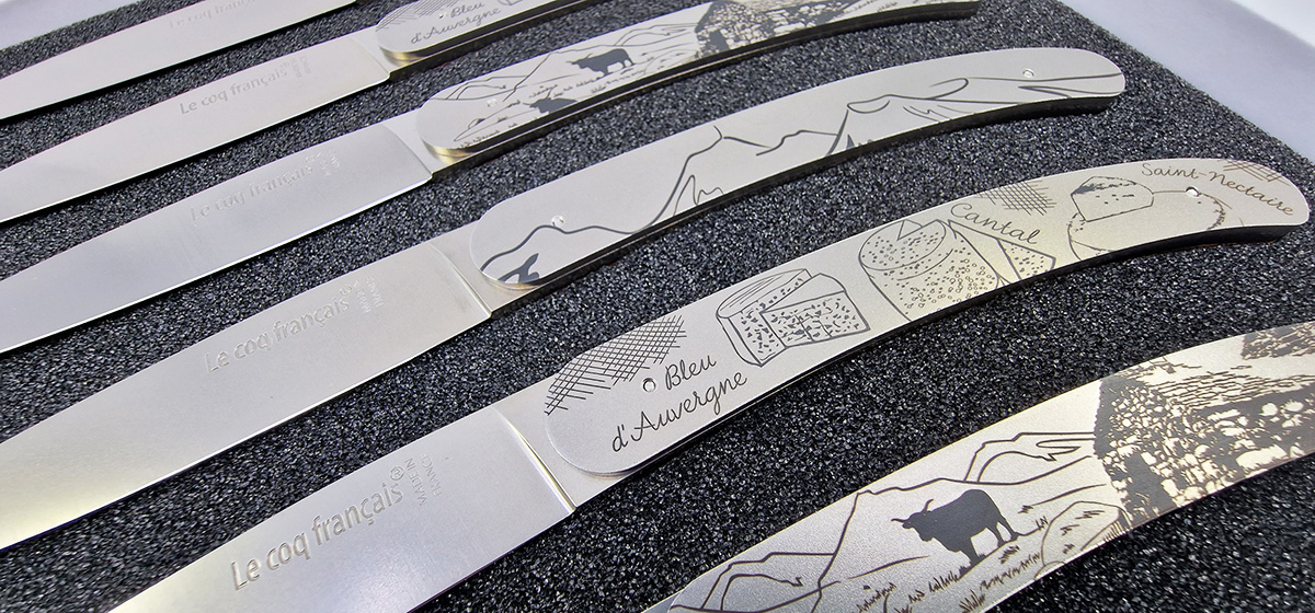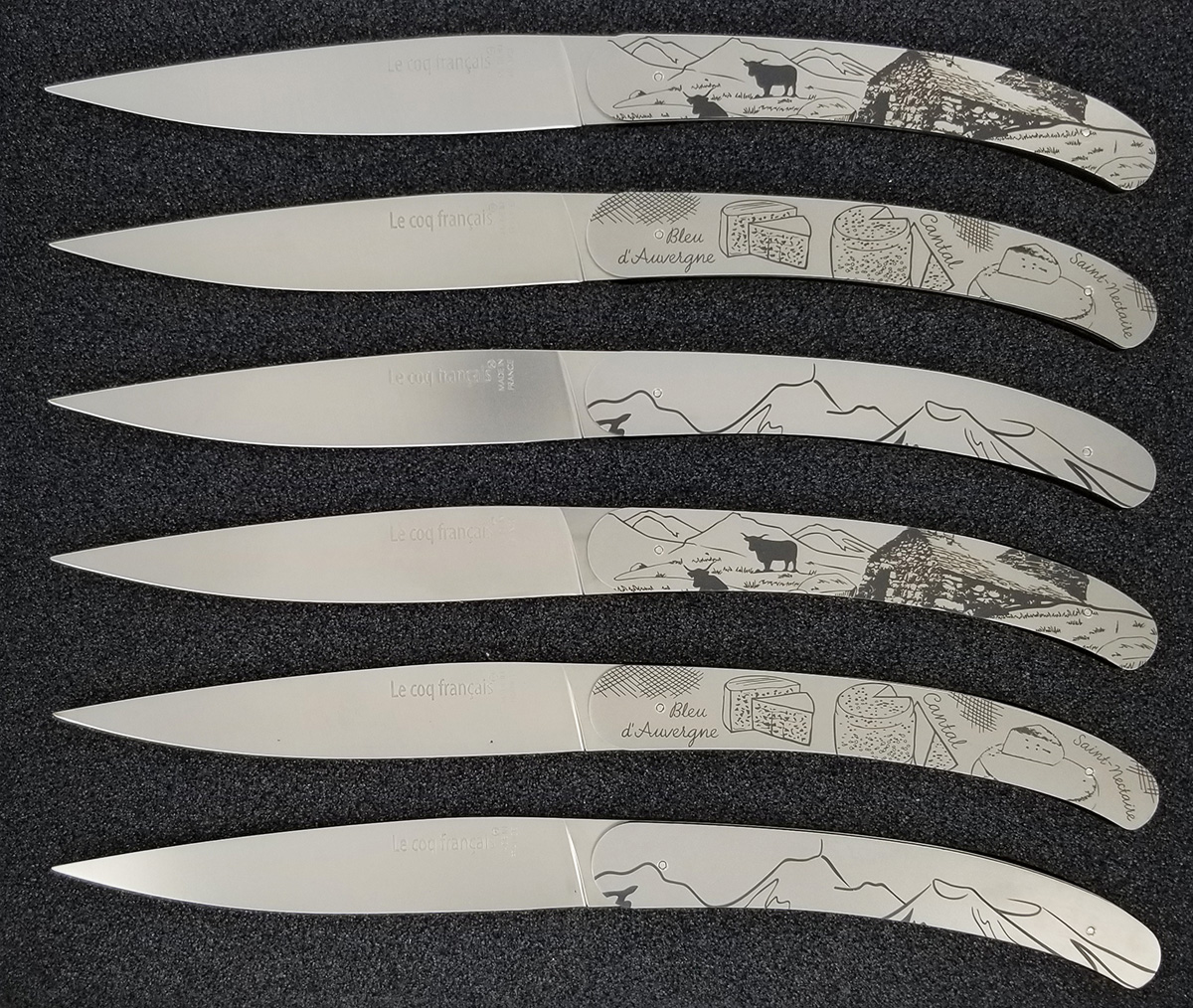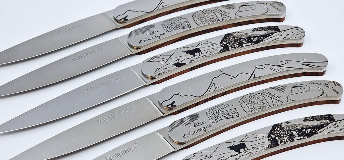 Set aus 6 Le Coq Français Siebdruckmessern – AUVERGNE Kollektion