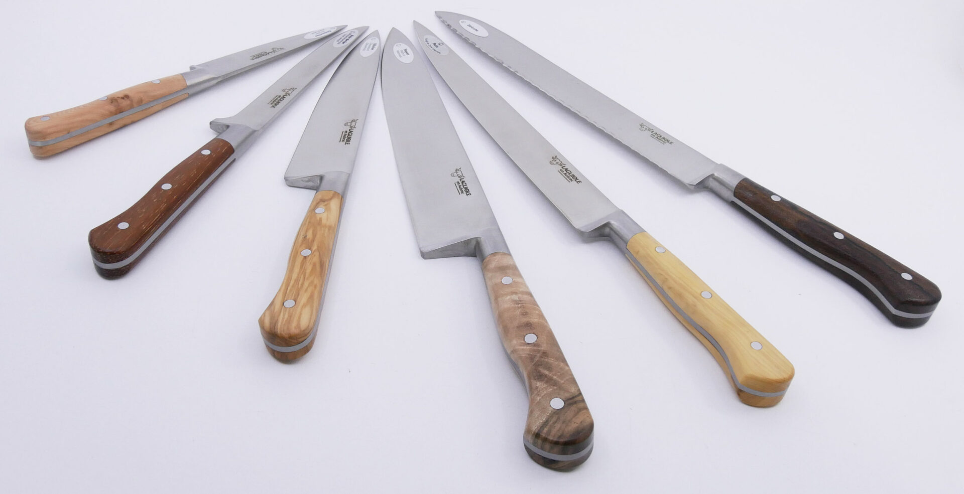 Laguiole en Aubrac stellt einen magnetischen Messerblock aus Eiche vor, der ein sorgfältig ausgewähltes Set von sechs Küchenmessern enthält. Die Kollektion besticht durch Griffe aus verschiedenen edlen Hölzern: Wacholder, Rosenholz, Olivenholz, Walnuss, Buchsbaum und Ziricote. Das Set umfasst zwei Officemesser mit Klingenlängen von 10 cm und 13 cm, zwei Kochmesser mit 15 cm und 20 cm, ein Tranchiermesser von 20 cm sowie ein Brotmesser von 20 cm. Alle Messer sind stilvoll in einem magnetischen Eichenblock untergebracht.