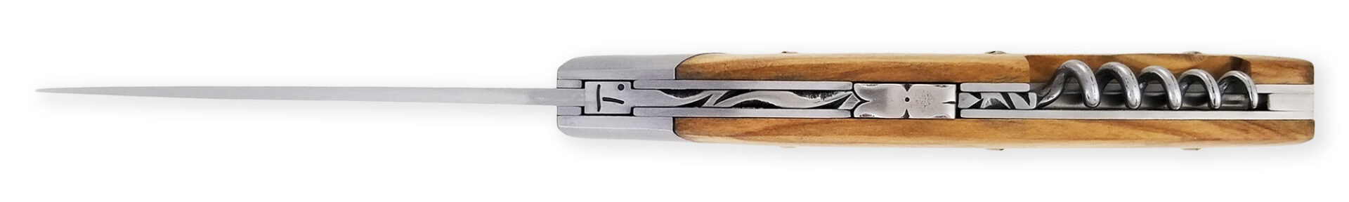 Dieses herausragende Klappmesser besticht durch einen Griff aus Olivenholz und einen 5-spiraligen Korkenzieher. Die Klinge besteht aus schwedischem 13C26 Edelstahl mit gebürsteter Oberfläche, der für seine Langlebigkeit und Schärfe geschätzt wird. Ein einzelner gebürsteter Edelstahlbacken und eine handgeschnitzte Feder verleihen dem Messer sowohl Eleganz als auch Funktionalität. Für zusätzliche Sicherheit sorgt eine Frontpumpensicherung.