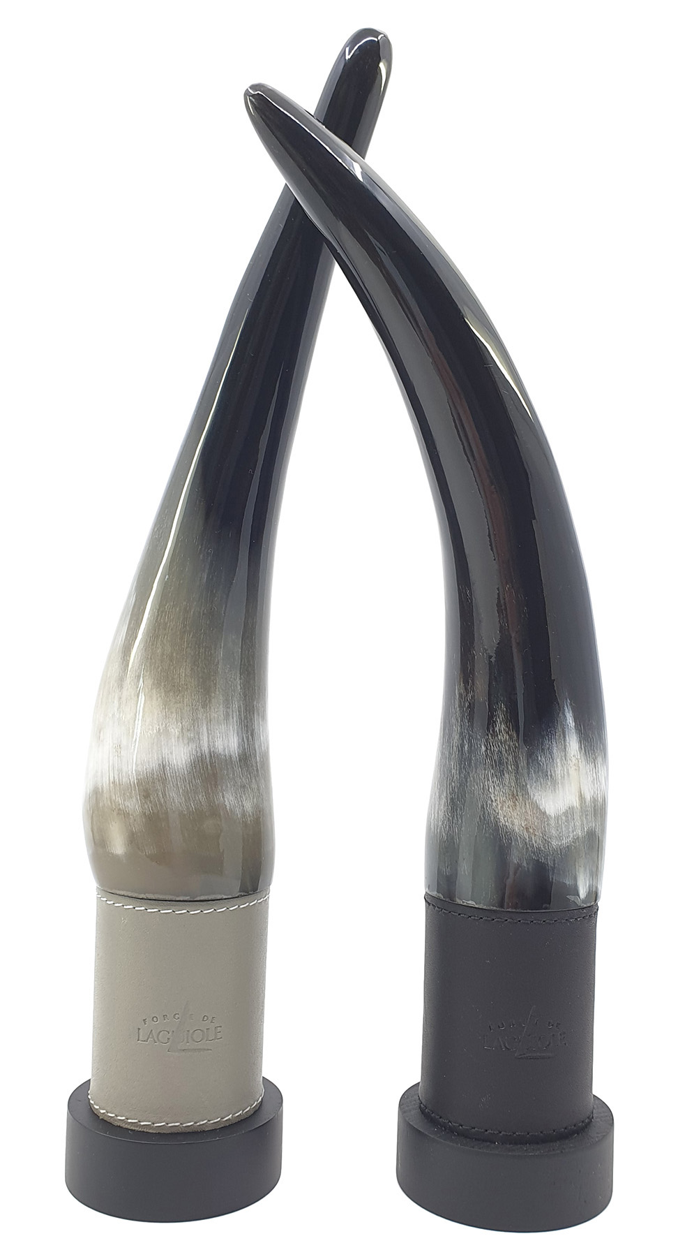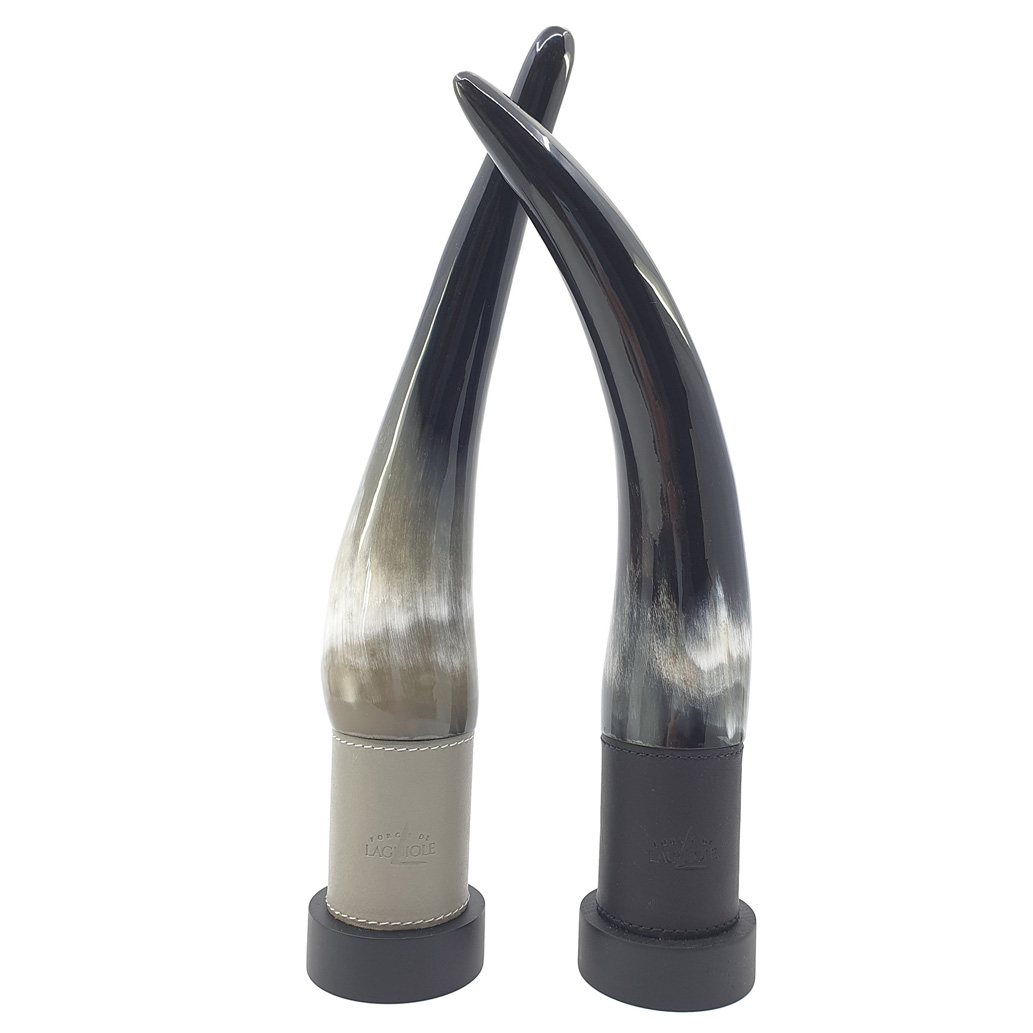 Der Deckel der Mühle ist aus einem atemberaubenden blonden Aubrac-Horn geschnitzt und beherbergt ein vollständig in Frankreich gefertigtes Mahlwerk. Der Korpus besteht aus Buchenholz und ist elegant in schwarzes Leder gehüllt, das an die Aubrac-Kuh erinnert, während die Salzmühle in graues Leder gekleidet ist. Diese Zusammenarbeit zwischen Forge de Laguiole und MARLUX hat Salz- und Pfeffermühlen hervorgebracht, die eine Feier des gehobenen Genusses darstellen.