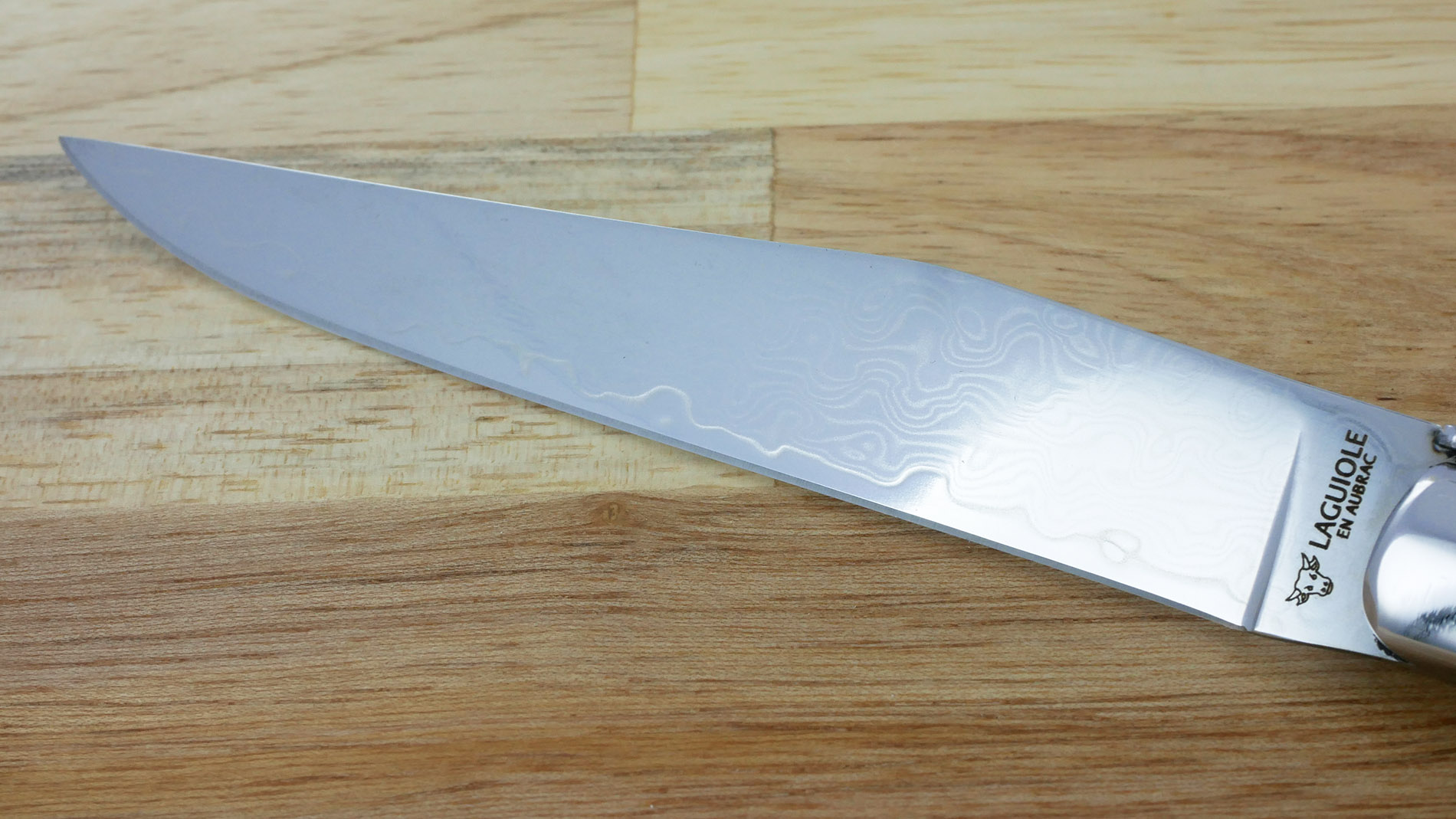 Prestige Laguiole en Aubrac Tafelmesser mit Griff aus Flammenhornspitze und Damastklinge (Satz von 4)